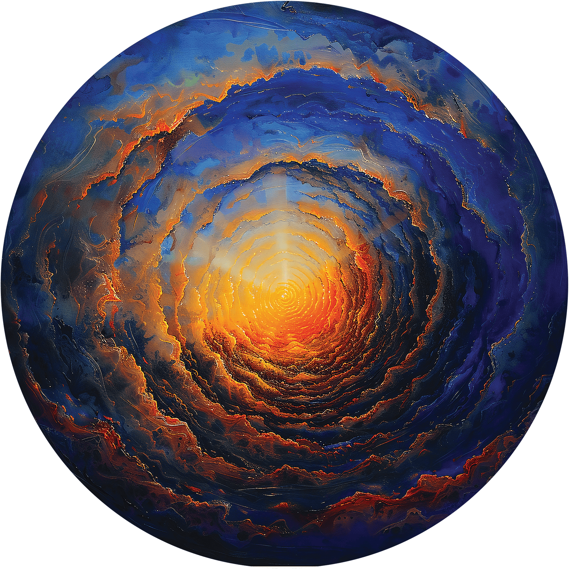 The printed art is Celestial Portal, a mysterious spiral that feels like a gateway into the universe. Its deep tones and glowing edges evoke infinity and cosmic exploration.