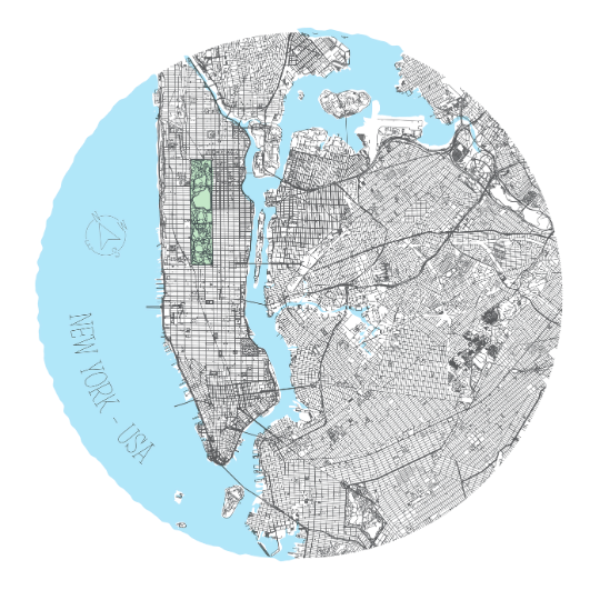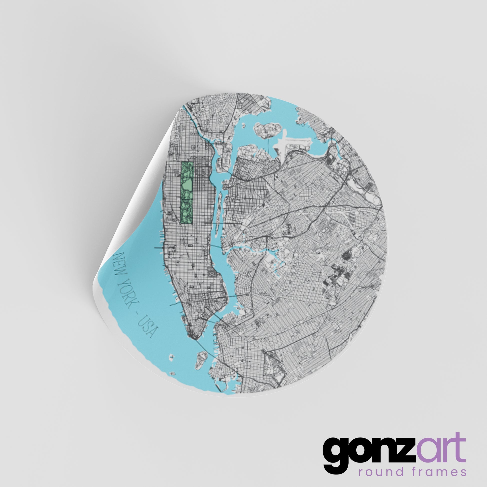 The printed art is New York City, bold and iconic, represented in a round format that highlights the vibrancy and structure of its map design. A timeless choice for lovers of big cities.