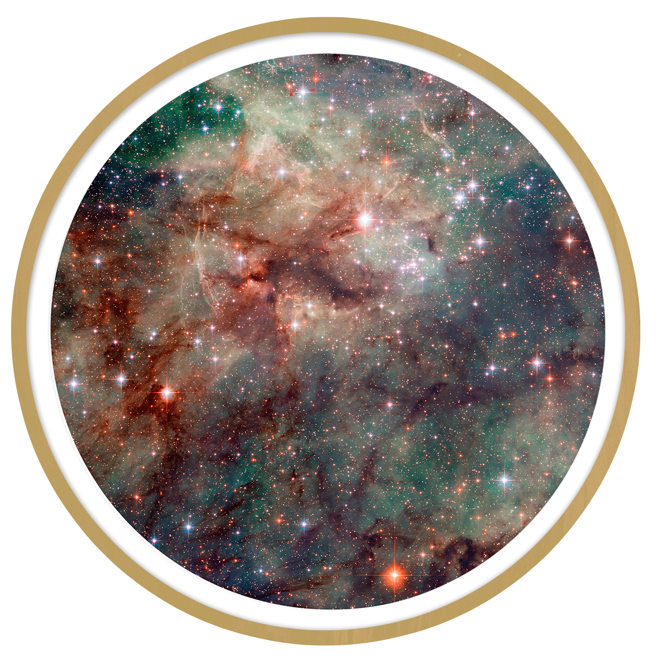 The printed artwork is Tarantula Nebula, with sprawling clouds of gas and star formation. Its textures and luminous colors make it both chaotic and mesmerizing, ideal for adding cosmic drama.